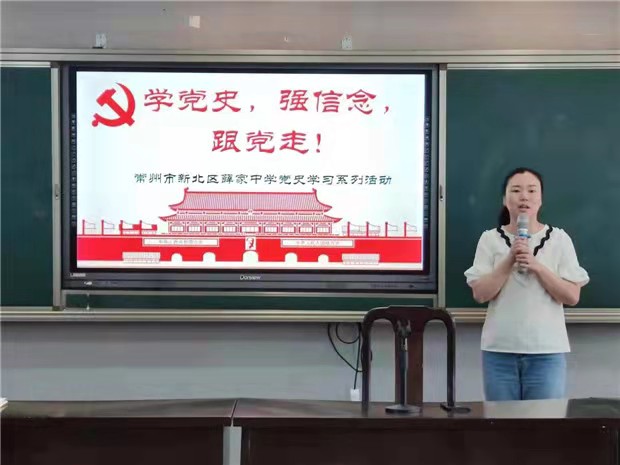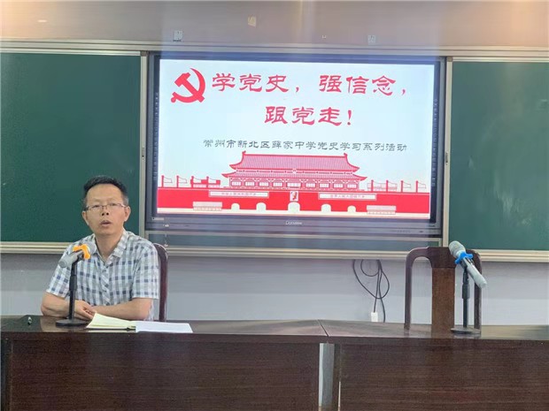 为深入开展党史学习教育,从党的百年伟大奋斗历程中一起感悟党史中蕴含的智慧和力量,推动党史学习教育往深里走、往心里走、往实里走。按照学校党支部统一安排部署,5月18日,薛家中学组织全体党员和教工认真开展党史学习教育。本次学习教育由王建荣副校长主持。