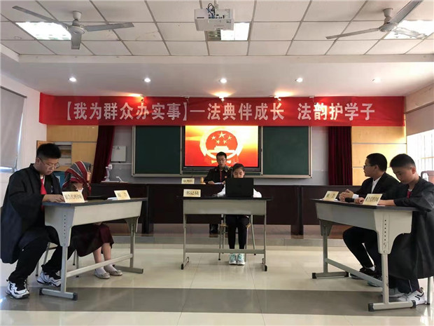 模拟法庭是指在教师的指导下由学生扮演法官、案件的当事人、其他诉讼参与人等,以司法审判中的法庭审判为参照,模拟审判某一案件的活动。通过分析和研究案例,模拟案件的发生经过,再以此为依据进行庭审处理,解释法律规定,掌握案情与法律之间的关系,让法律法规活学活用,以达到懂法和守法相统一,同时学生的亲身参与,增强了学生遵纪守法的意识,提高了学生的法制观念。