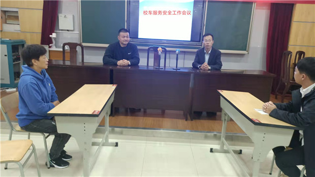 随后,吴继荣副校长和总务处副主任高仁青老师与校车服务公司相关人员一起召开了校车服务安全会议。就校车行车安全提出要求,校车驾驶员要加强学习交通安全知识,自觉遵守交通法规,有效保障校车的安全行驶,预防和减少交通事故的发生;校车企业要坚持安全第一,预防为主的方针,全面落实校车安全主体责任,提高校车安全管理水平,充分认识实施动态监管的重要性和必要性,全面落实校车管理的各项措施,强化责任,确保平安接送每名学生,自觉养成良好的驾驶习惯,坚决做到安全驾驶,文明出行。