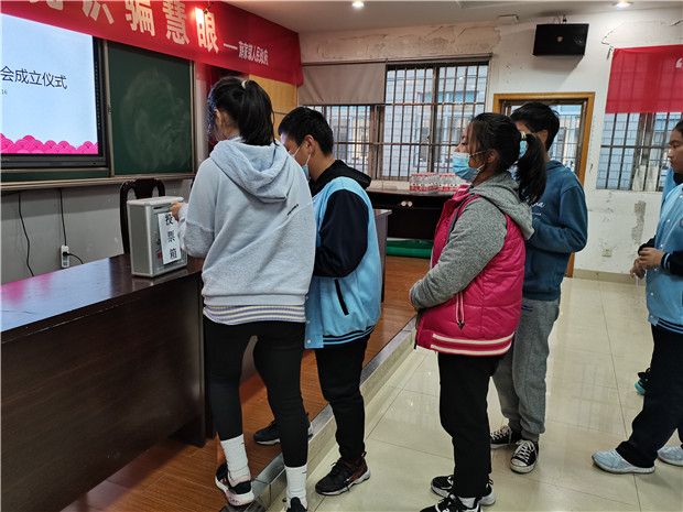 龚如主任则向全体同学介绍了学生会竞选、筹备的过程,并诠释了学生会成立的宗旨与承担的职责。随后,通过班级推荐、资格审查后的学生会候选干部进行了竞选演讲,现场的学生代表则在竞选演讲后进行了无记名投票,统计结束后成立了以八11班徐一一同学为主席的学生会。