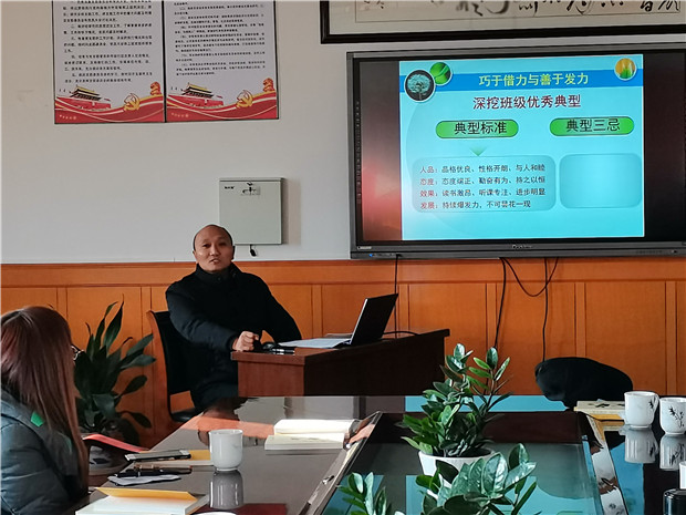 会上,成长营班主任代表姚冬青老师以《毕业班后期班级管理的几点思考》为题与老师们畅论班级管理。他从真心付出与耐心等待;巧于借力与善于发力;提升沟通力与强化执行力三方面,结合具体的班级事例,强调了班主任工作中要凝聚真心、耐心、爱心,在日常班级管理中要抓住学生的闪光点,及时表扬鼓励!