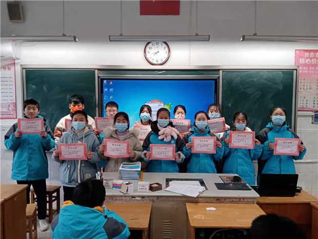 半年的勤奋拼搏,半年的同舟共济,留下了许多感动和思考。盘点精彩,突显荣誉。教导处蒋楠副主任受学校的委托分别宣读期末表彰决定,各班班主任为获得荣誉的学生颁奖。同学们把掌声与鼓励送给大家和自己,希望全体同学,在寒假中,多读书 ,读好书,度过一个快乐、充实、安全的假期。