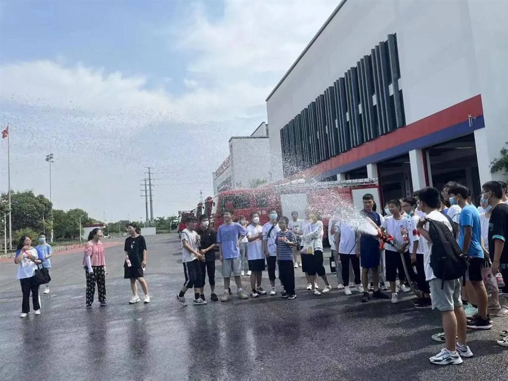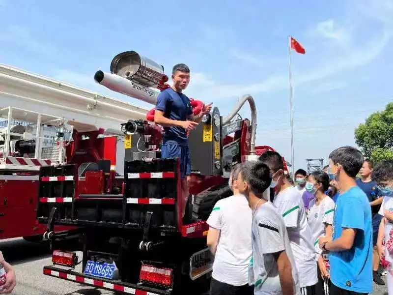 为了让学生更直观感受消防员的生活,学习消防知识,提升消防安全技能,让学生们更加了解消防员的工作环境,萌发对消防员这一份特殊职业的钦佩之情,深入领会到爱国拥军、同心向党的重要性,在学校政教处的组织下,7月26日上午,省常中教育集团薛家中学组织部分七年级学生走进了常州消防特勤一中队,开展“爱国拥军 同心向党”暑期社会实践活动,“零距离”体验了消防生活。