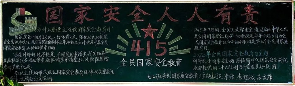 为做好本次教育活动,学校采用师生喜闻乐见、容易接受的形式,通过国旗下讲话、展板、班级板报以及绘制主题手抄报、召开主题班会等形式,深入浅出地讲解了国家安全保护规则,有针对性地开展国家安全知识宣传教育活动,提升同学们的国家安全意识,提醒同学们远离妨害国家安全行为,增强同学们国家安全保护意识。并教育广大师生认识到国家安全是国家生存和发展的根本保证,要牢固树立国家政治安全、经济安全、军事安全、国土安全、文化安全、生态安全和社会安全等在内的总体国家安全观,认识到维护国家安全是每个公民应尽的义务。提醒大家要从自身做起,坚决抵制危害国家安全的行为。并通过“小手牵大手”的做法,让同学们把在学校学到的国家安全知识讲给家人听,实现“小手牵大手”的良性传递,有助于学校、家庭、社会相互协调,共同维护国家安全。