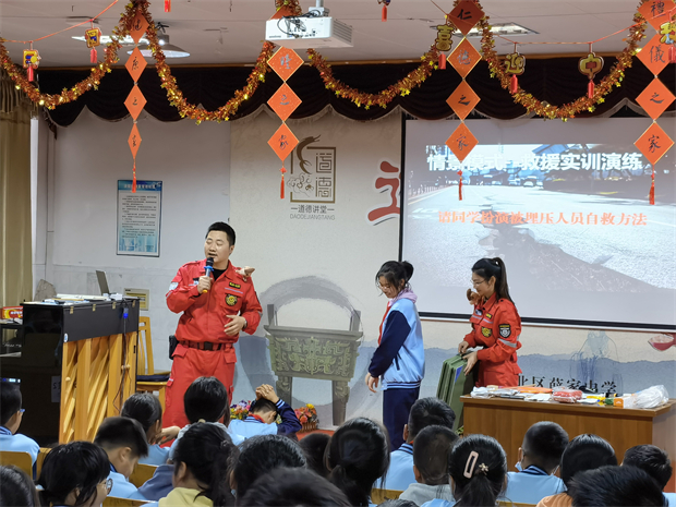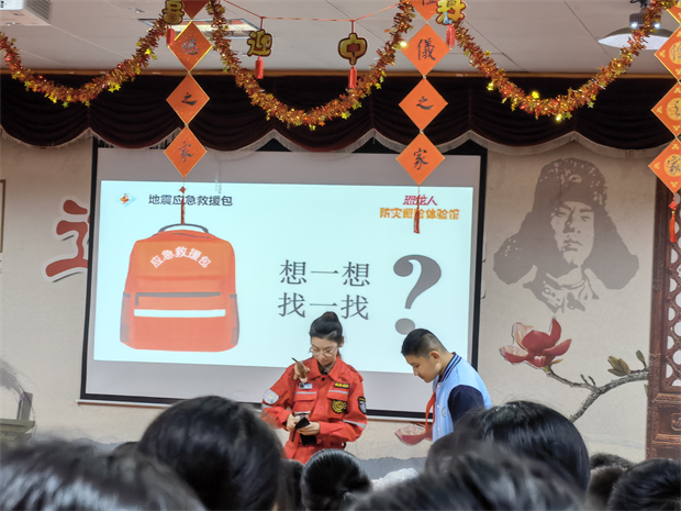 针对学校和中学生的特点,当天的讲座以图文讲解的形式向同学们科普了什么是地震、在地震中如何迅速逃生、自救的方法等知识。针对如何防范地震灾害和如何自救逃生,以现实的事例展开了一系列的提醒与教育。同学们听得聚精会神,并积极参与互动。在互动活动中,大家进行了情境模拟,同学们纷纷发表自己的看法。