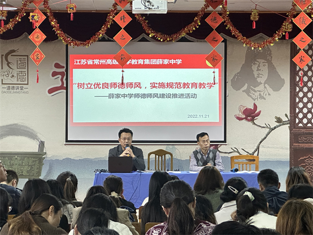 使命呼唤担当。为切实加强全校师德师风建设,提高师德修养,树立良好教师形象,增强教书育人的责任感、使命感,提高教师思想素质和职业道德水准,教育教师守望初心,廉洁从教。11月21日,省常中教育集团薛家中学举办师德师风建设推进活动。