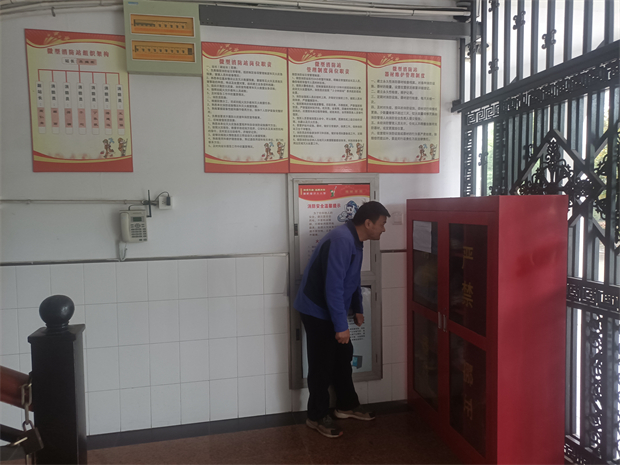 加大排查力度,防患于未然。11月22日,吴继荣副校长、总务处高仁青主任等进行水电消防安全大检查。宿舍、食堂、图书馆、门卫、办公室、实验室、功能室、会议室、车蓬,教学楼等;灭火器、消防水带、消防栓、灭火毯、微型消防站等。对学校内部消防安全环境再次做拉网式隐患彻查,加强封闭管理,禁止社会闲杂人员进入校园,严禁易燃易爆物品进入校园。加强用电管理,严禁表外用电和超负荷用电,严禁私自接线和改装用电设备。深入细致地开展了一次消防安全大检查,进一步完善了学校安全工作体系,不断加强学校安全防范意识和各项安全防范措施,进一步消除学校内部各种设施的安全隐患,确保广大师生的生命安全。通过此次大检查,让广大师生真正认识到走进消防,了解消防,人人参与消防工作的重要性,时刻牢记“消防安全、警钟长鸣”。