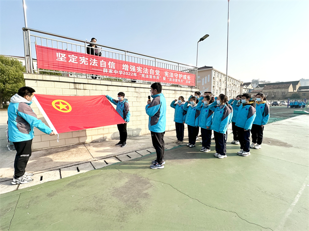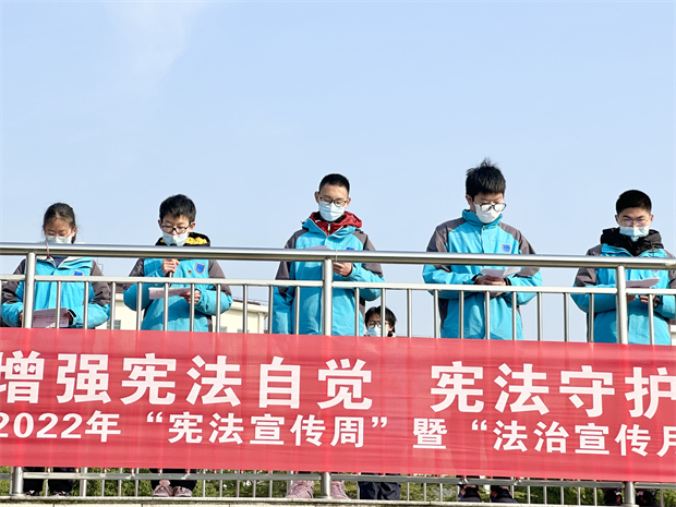 为提升学生宪法法治意识,引导学生知宪法、懂宪法、用宪法的积极性,增强学生安全意识、法律意识和自我保护意识,构建和谐、平安、法治校园,12月12日,在政教处的组织下,省常中教育集团薛家中学开展了2022年“宪法宣传周”暨“法治宣传月”活动。