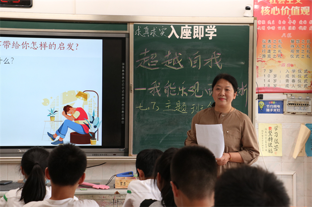 当今社会,随着经济的发展和文明的丰富,在父母和长辈的庇护下,孩子挫折经验较少,内心细腻、敏感、脆弱,稍经历一些小挫折便容易产生消极情绪,甚至逃避,不敢再进行尝试,害怕失败。久而久之,学生会对自己的实力产生怀疑,丧失自信心。可见,培养学生的抗挫折能力,进行挫折教育,帮助学生树立积极、乐观、健康的生活态度,对学生个人发展和适应社会显得尤为重要。为此,七7班班主任张美荣老师开展《挫而不折,超越自我》主题班会。