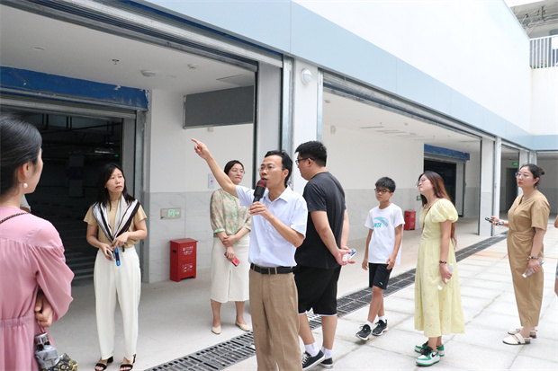 紧接着,家长代表一行参观了学生食堂,学生食堂通过连廊与教学楼相连,分为上下二层,食堂每一层都装配空调、紫外线消毒装置、洗手台等设施,在供餐能力、饮食安全等方面都能得到保障。并一起实地观看了接送系统。各位家长对学校做出的努力以及整个暑期的付出表示了感谢,对于学校的整个设施、环境,都表示出非常的满意。同时也愿意为学校后面的进一步发展,一起携手努力。
