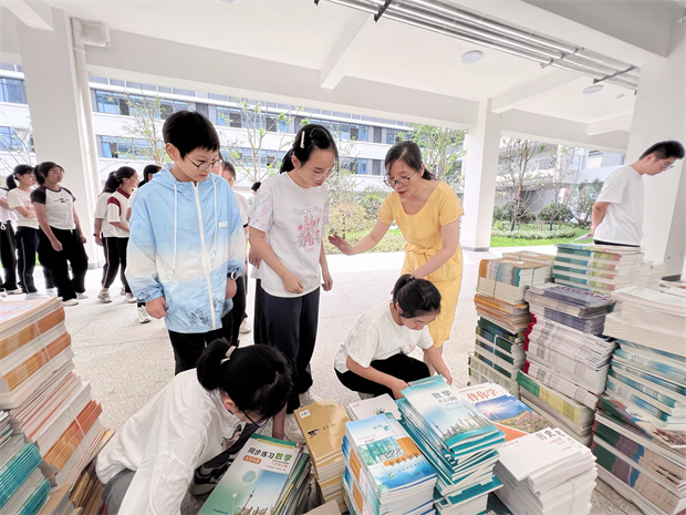 孩子全部到班后,在班主任的带领下,学生们以班级为单位排队领取新课本。一列列整齐的队伍,一摞摞崭新的课本,一张张欣喜的笑脸,领书现场有条不紊。拿到新课本,孩子们内心充满激动与憧憬,迫不及待翻开书本浏览预习,即将开始的学习生活一定会高效且充实。