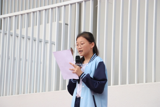 随后,八12班丁煜轩、王炜奇、周文博、夏嘉怿同学带来国旗下演讲《美丽薛中,文明有你》。同学们用对话的形式强调了新学校我们应有新气象,一举一动都应当承担起中学生的责任来,为建立文明校园做出自己的贡献。