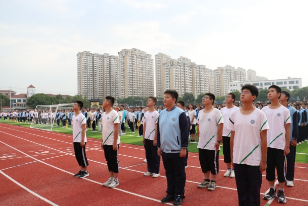 在庄严的升旗仪式激励全校师生以焕然一新的面貌、昂扬奋进的姿态,共创薛中文明新校园。