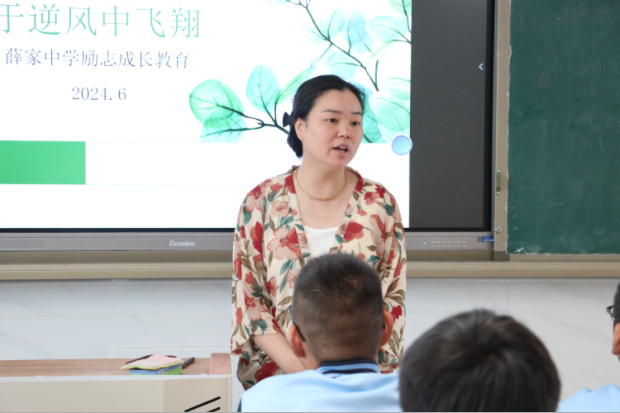 在薛中学子的注目下,政教处龚如副主任作了《于萧瑟中刚强 于逆风中飞翔》的励志成长教育讲座。她讲到力学如力耕,勤惰尔自知。但使书种多,会有岁稔时。在未来的旅途中,应你我携手同行,播种希望之种,收获光明未来。在学习的过程中,不断成长,不断进步,相信自己,相信未来,相信那日日夜夜无悔的奋斗,相信那颗充满无限希望的种子都承载着我们的梦想和期望。每一次付出,都铺就了通往成功的道路。播种希望,就能收获未来。并以董宇辉为例,使同学们明白每一朵绽放耀眼的花朵,都会经过风雨的洗礼;每一棵屹立挺拔的翠竹,都要经过破土的黑暗,但隧道的尽头终是光明。时间的意义,从来都是由拼搏者赋予,敢于攀登,无畏无惧,执笔为剑,踏浪前行。