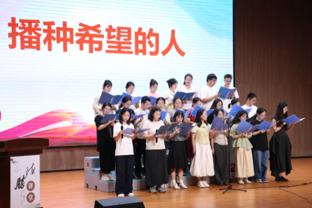 新蕊初声,新教师进行自我介绍,分享了入职以来的感悟与成长,表达了扎根教育、奉献青春的决心。随后,新教师们集体朗诵《播种希望的人》,他们用饱含激情的声音,抒发了对教育事业的憧憬与担当,展现了新生代教师的蓬勃朝气。